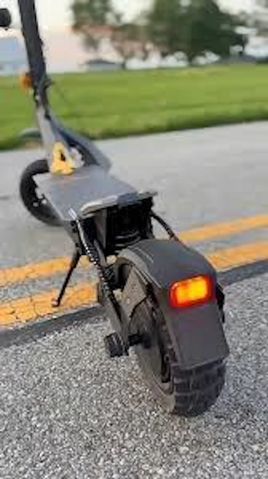 Ausom SR1 är en riktigt kraftfull elscooter som levererar bra både i acceleration och toppfart. Den känns stabil även när man kör lite snabbare och tar backar utan att tveka. Fjädringen gör sitt jobb bra och ger en trygg körkänsla även på sämre underlag.