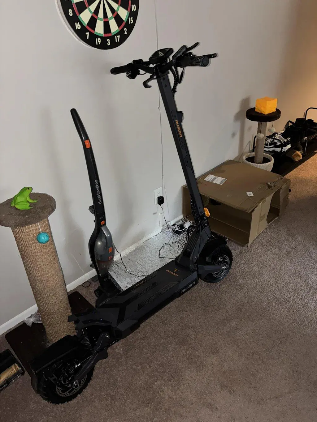 Några mindre minus är att laddaren kan vara lite långsam (och vissa användare har haft problem med original-laddaren), plus att vikten gör den lite otymplig att slå ihop och bära. Allt som allt är det en riktigt bra scooter för priset, men den är inte perfekt — speciellt om du är ute efter något superlätt eller vill ha absolut felfri byggkvalitet.